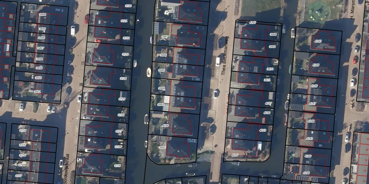 Thea Beckmanweg 7 is gelegen op kadastraal perceel SDE02B3994. Deze kadastrale aanduiding is uniek en wordt gebruikt door het Kadaster om eigendomsrechten en andere zakelijke rechten vast te leggen. Het perceel maakt onderdeel uit van de kadastrale gemeente Stede Broec.