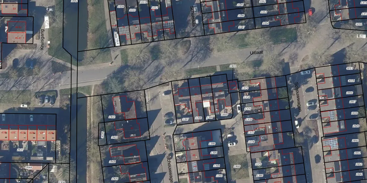 Het perceel waarop Uitlaat 35 staat heeft een oppervlakte van 225 m². Dit is een middelgroot perceel. De perceeloppervlakte wordt geregistreerd door het Kadaster. Gedetailleerde informatie over de maten van dit perceel kunt u vinden in het rapport Kadastrale kaart met maatvoering van Uitlaat 35.