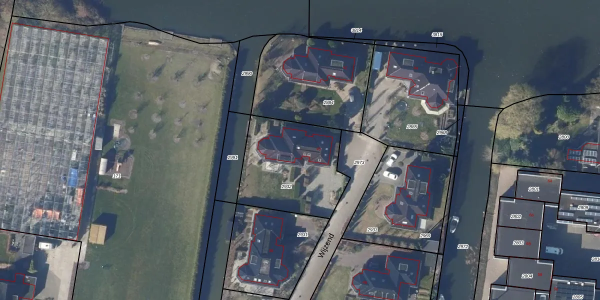 Het perceel waarop Wijzend 40 staat heeft een oppervlakte van 970 m². Dit is een groot perceel. De perceeloppervlakte wordt geregistreerd door het Kadaster. Gedetailleerde informatie over de maten van dit perceel kunt u vinden in het rapport Kadastrale kaart met maatvoering van Wijzend 40.