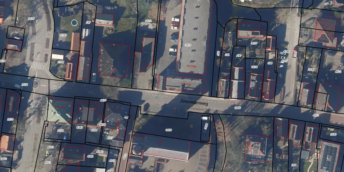 Zesstedenweg 202-c is gelegen op kadastraal perceel SDE02B3373. Deze kadastrale aanduiding is uniek en wordt gebruikt door het Kadaster om eigendomsrechten en andere zakelijke rechten vast te leggen. Het perceel maakt onderdeel uit van de kadastrale gemeente Stede Broec.