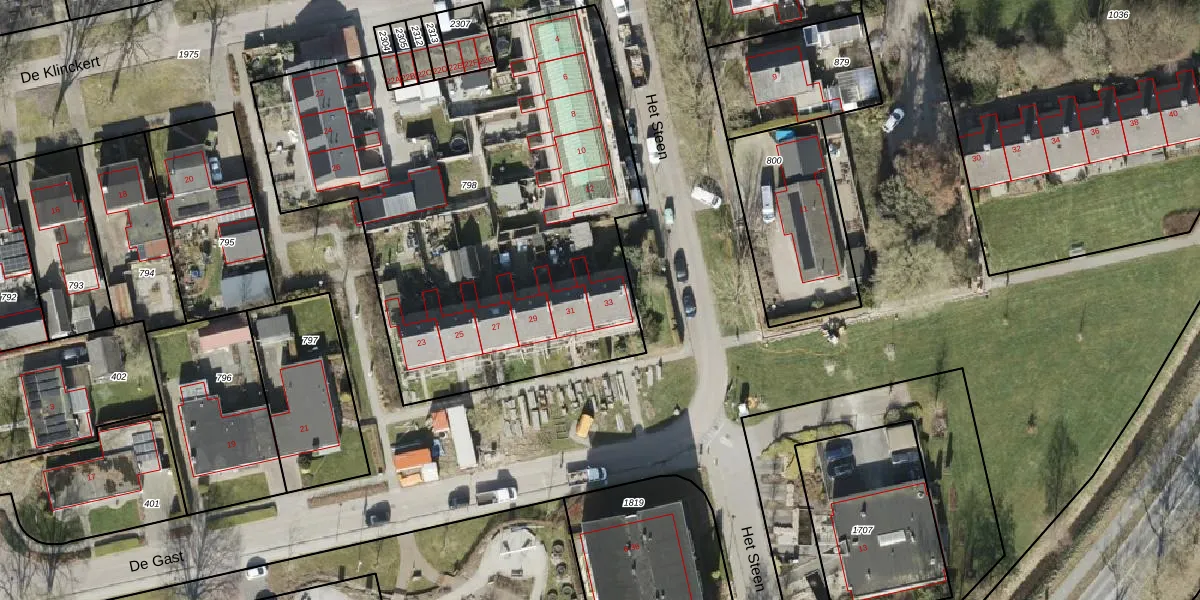 Het perceel waarop De Gast 33 staat heeft een oppervlakte van 2760 m². Dit is een zeer groot perceel. De perceeloppervlakte wordt geregistreerd door het Kadaster. Gedetailleerde informatie over de maten van dit perceel kunt u vinden in het rapport Kadastrale kaart met maatvoering van De Gast 33.