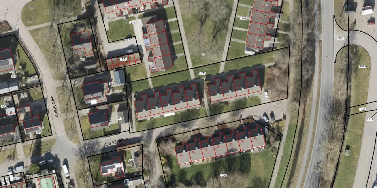 Het perceel waarop De Klinckert 39 staat heeft een oppervlakte van 2310 m². Dit is een zeer groot perceel. De perceeloppervlakte wordt geregistreerd door het Kadaster. Gedetailleerde informatie over de maten van dit perceel kunt u vinden in het rapport Kadastrale kaart met maatvoering van De Klinckert 39.