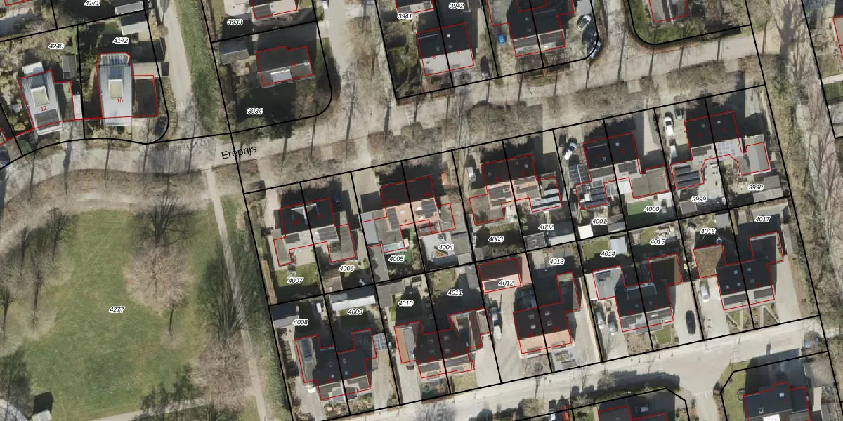 Ereprijs 13 is gelegen op kadastraal perceel GTG00D4004. Deze kadastrale aanduiding is uniek en wordt gebruikt door het Kadaster om eigendomsrechten en andere zakelijke rechten vast te leggen. Het perceel maakt onderdeel uit van de kadastrale gemeente Grootegast.