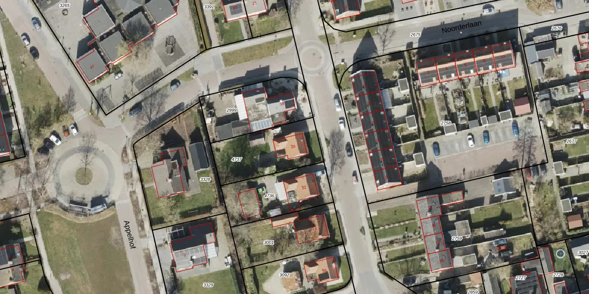 Gebruik de zoekbalk of klik op een perceel voor informatie over de adressen binnen dit perceel.