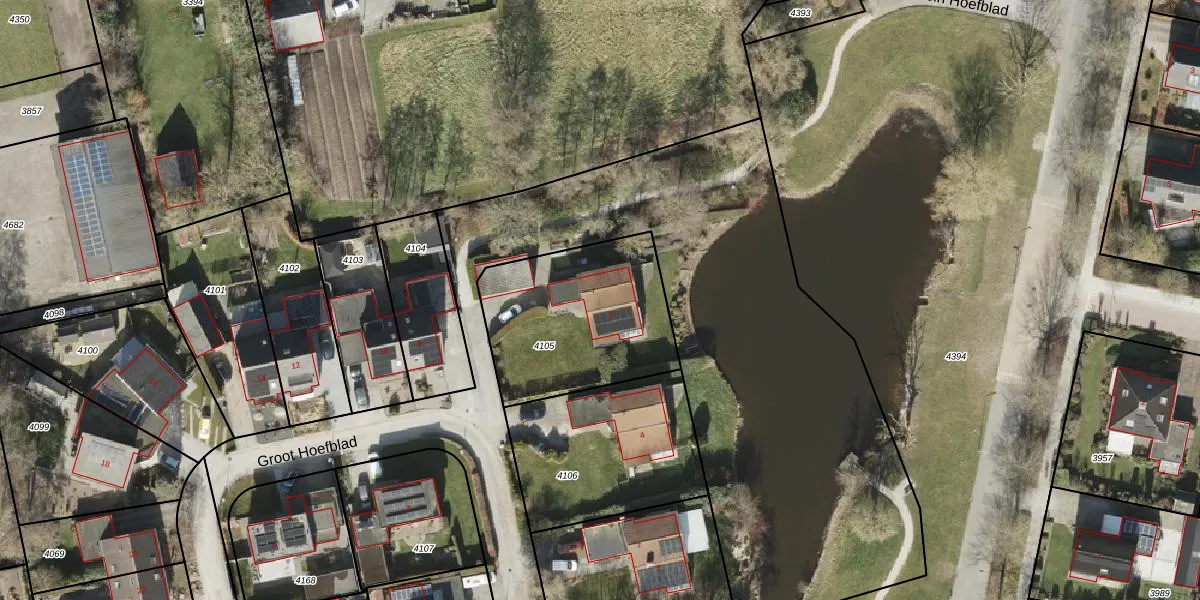 Gebruik de zoekbalk of klik op een perceel voor informatie over de adressen binnen dit perceel.