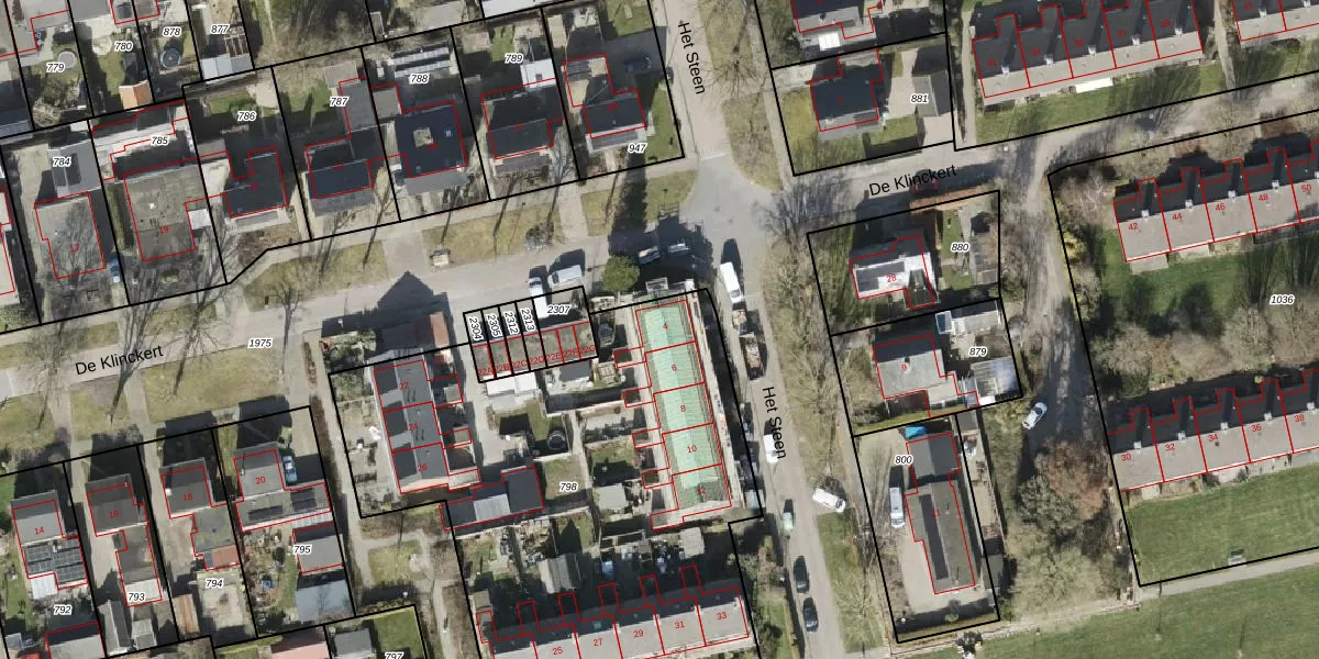 Het perceel waarop Het Steen 4 staat heeft een oppervlakte van 2760 m². Dit is een zeer groot perceel. De perceeloppervlakte wordt geregistreerd door het Kadaster. Gedetailleerde informatie over de maten van dit perceel kunt u vinden in het rapport Kadastrale kaart met maatvoering van Het Steen 4.
