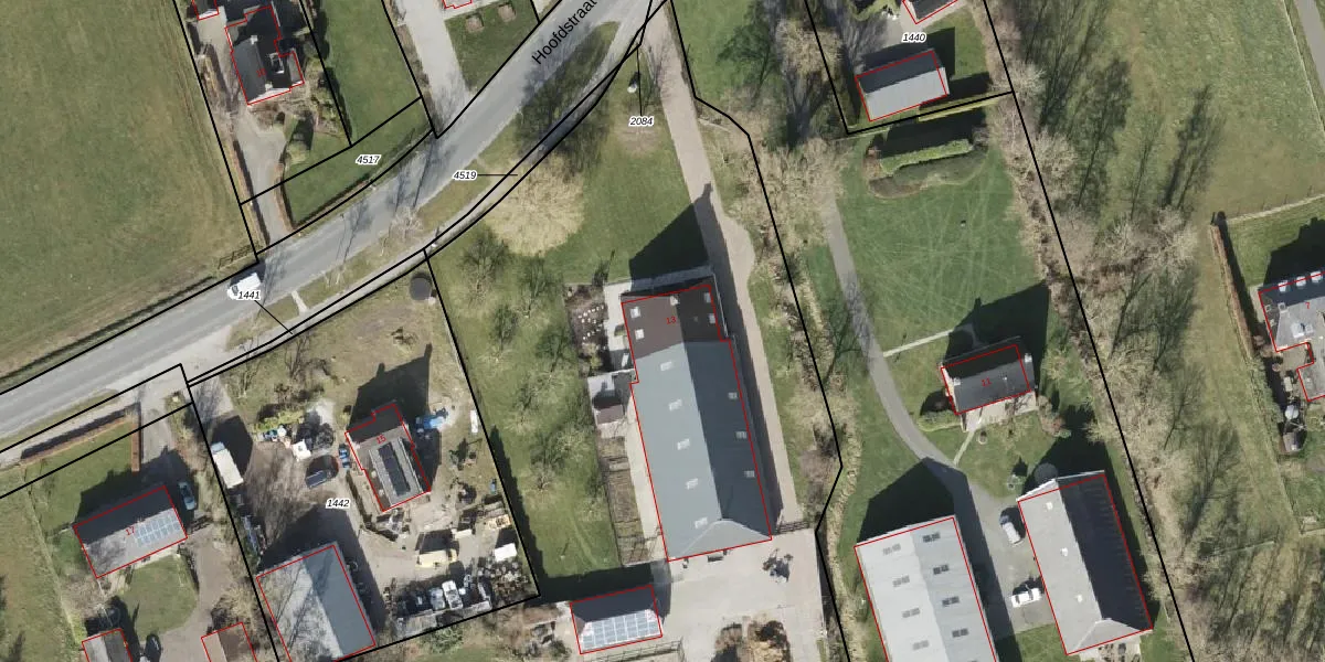 Het perceel waarop Hoofdstraat 13 staat heeft een oppervlakte van 1,8 ha. Dit is een zeer groot perceel. De perceeloppervlakte wordt geregistreerd door het Kadaster. Gedetailleerde informatie over de maten van dit perceel kunt u vinden in het rapport Kadastrale kaart met maatvoering van Hoofdstraat 13.