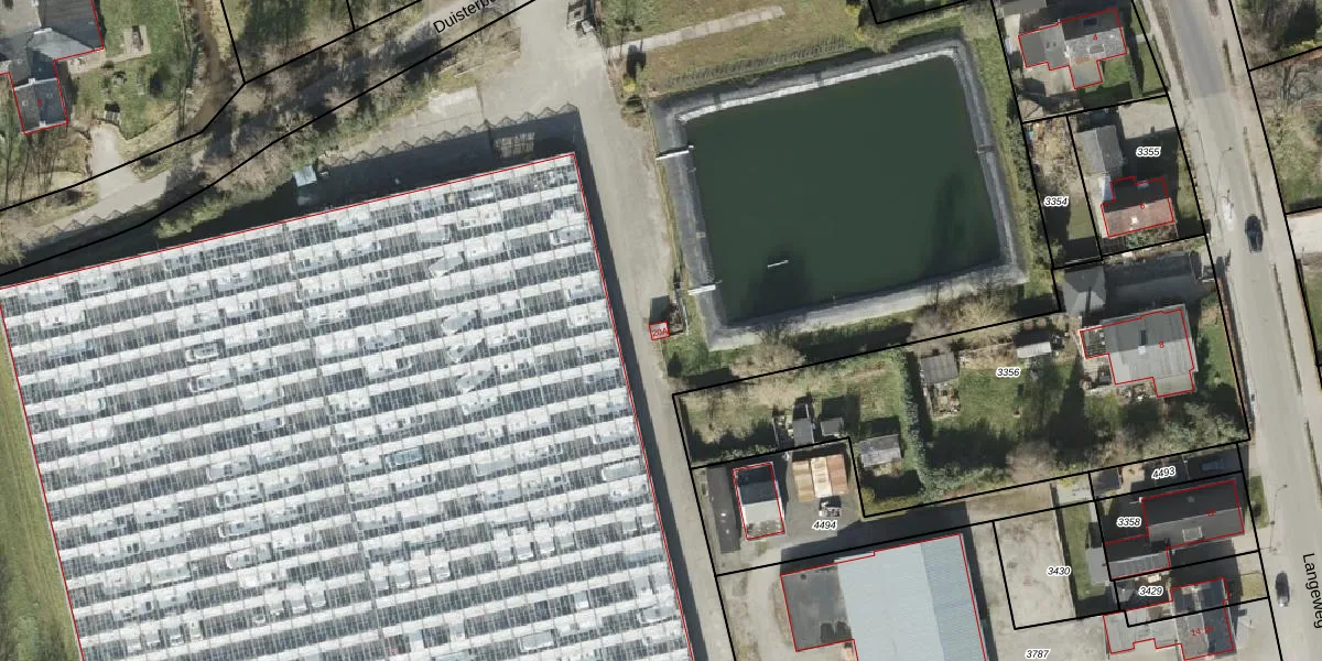 Het perceel waarop Langeweg 20-A staat heeft een oppervlakte van 3,4 ha. Dit is een zeer groot perceel. De perceeloppervlakte wordt geregistreerd door het Kadaster. Gedetailleerde informatie over de maten van dit perceel kunt u vinden in het rapport Kadastrale kaart met maatvoering van Langeweg 20-A.