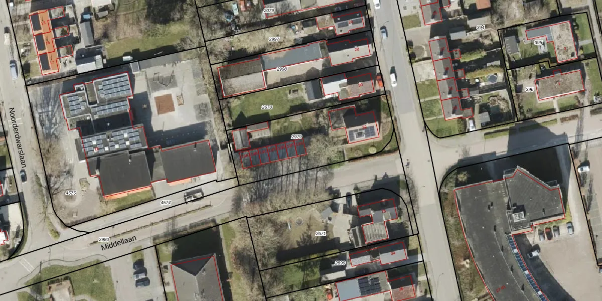 Het perceel waarop Middellaan 13-G staat heeft een oppervlakte van 1000 m². Dit is een zeer groot perceel. De perceeloppervlakte wordt geregistreerd door het Kadaster. Gedetailleerde informatie over de maten van dit perceel kunt u vinden in het rapport Kadastrale kaart met maatvoering van Middellaan 13-G.
