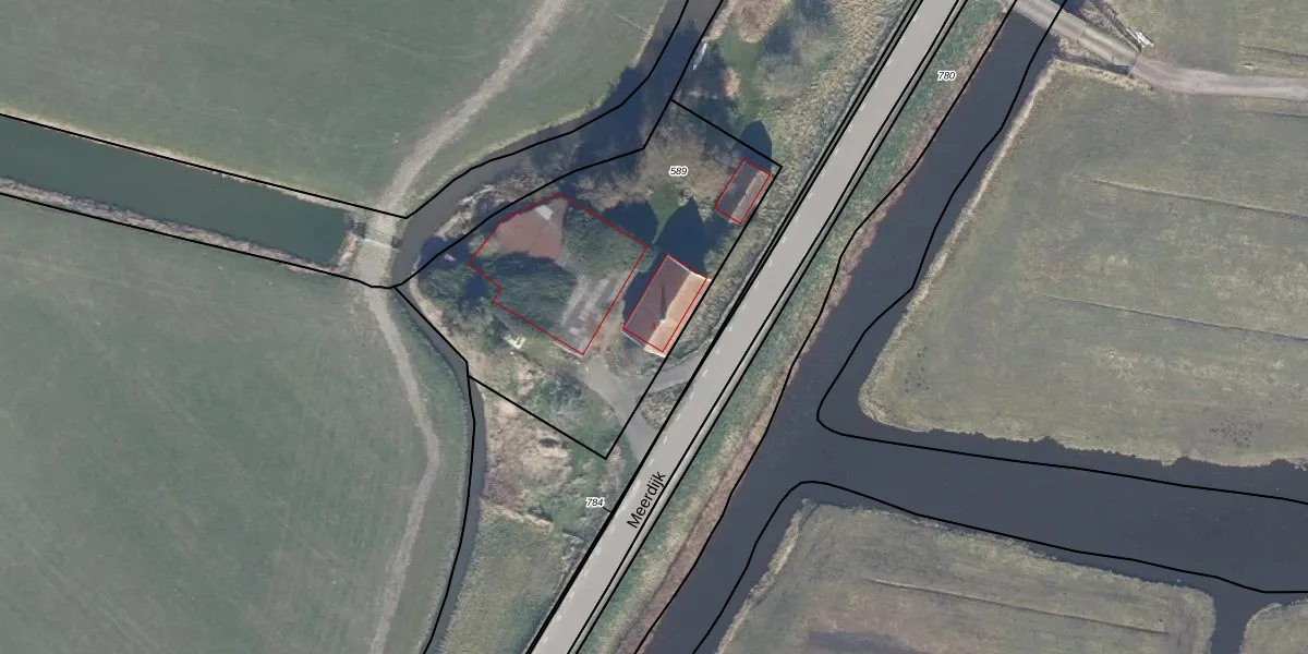 Het perceel waarop Meerdijk 3 staat heeft een oppervlakte van 1565 m². Dit is een zeer groot perceel. De perceeloppervlakte wordt geregistreerd door het Kadaster. Gedetailleerde informatie over de maten van dit perceel kunt u vinden in het rapport Kadastrale kaart met maatvoering van Meerdijk 3.