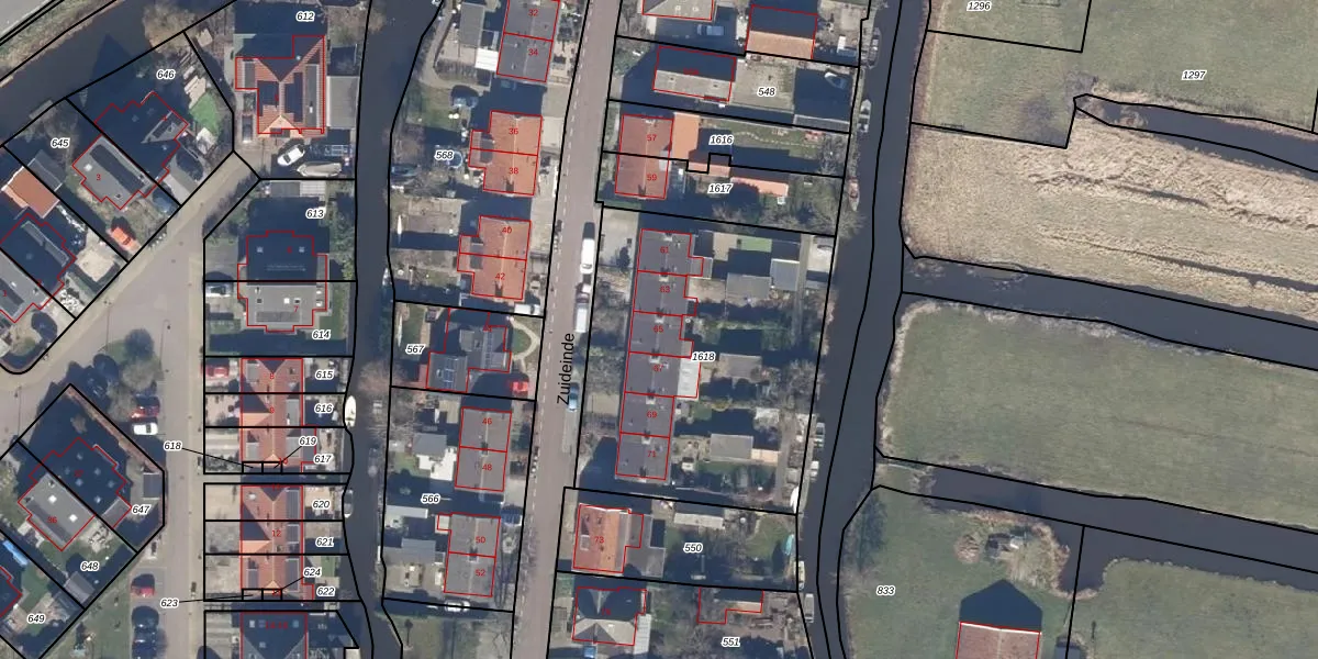 Het perceel waarop Zuideinde 65 staat heeft een oppervlakte van 1489 m². Dit is een zeer groot perceel. De perceeloppervlakte wordt geregistreerd door het Kadaster. Gedetailleerde informatie over de maten van dit perceel kunt u vinden in het rapport Kadastrale kaart met maatvoering van Zuideinde 65.