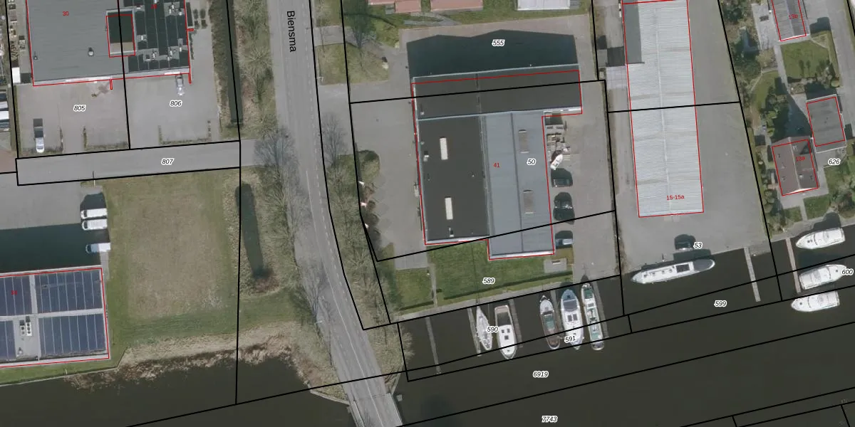 Het perceel waarop Biensma 41 staat heeft een oppervlakte van 2025 m². Dit is een zeer groot perceel. De perceeloppervlakte wordt geregistreerd door het Kadaster. Gedetailleerde informatie over de maten van dit perceel kunt u vinden in het rapport Kadastrale kaart met maatvoering van Biensma 41.