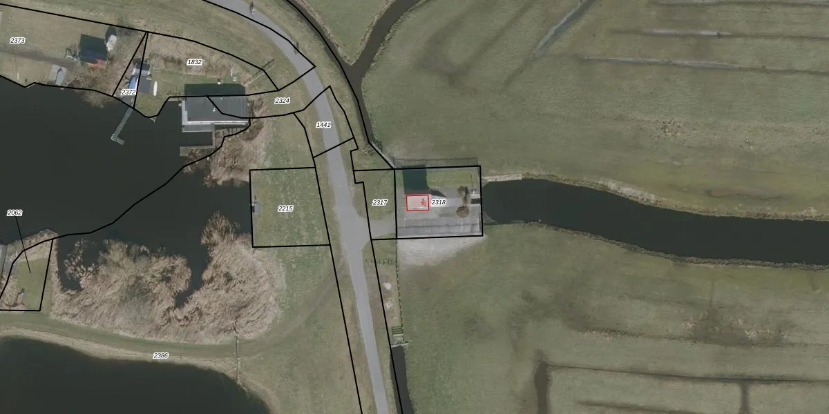 Het adres is gelegen op perceel 2318 in de sectie C en de kadastrale gemeente Grouw. De kadastrale aanduiding is aldus GRO00-C-2318. Het perceel is kleiner dan gemiddeld in Grouw. Het perceel is 348 m² groot, terwijl het gemiddelde ligt op 4953,5 m². Het grootste perceel in de kadastrale gemeente is 1,23 km². Het kleinste perceel heeft een oppervlakte van 1 m². Er zijn geen andere adressen aanwezig op het perceel. De laatste wijziging in het de Basisregistratie Kadaster (BRK) was op 21-09-2023.