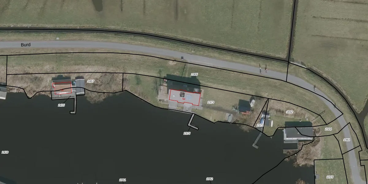 Burd 6-d is gelegen op kadastraal perceel GRO00C2373. Deze kadastrale aanduiding is uniek en wordt gebruikt door het Kadaster om eigendomsrechten en andere zakelijke rechten vast te leggen. Het perceel maakt onderdeel uit van de kadastrale gemeente Grouw.