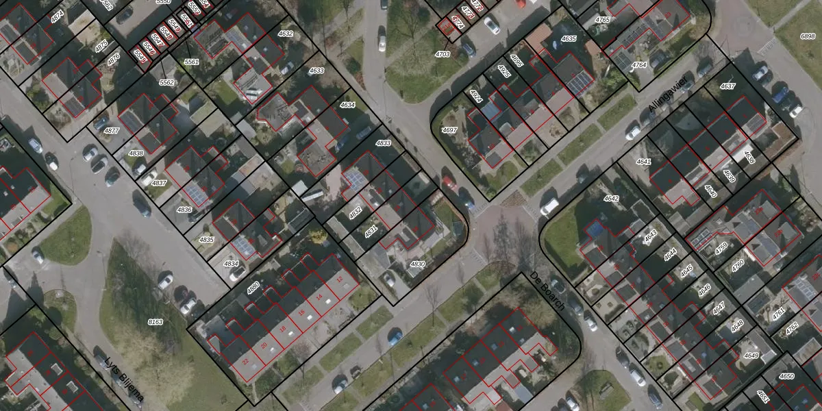 Het perceel waarop De Boarch 14 staat heeft een oppervlakte van 166 m². Dit is een middelgroot perceel. De perceeloppervlakte wordt geregistreerd door het Kadaster. Gedetailleerde informatie over de maten van dit perceel kunt u vinden in het rapport Kadastrale kaart met maatvoering van De Boarch 14.