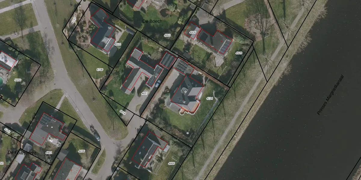 Het perceel waarop De Boech 7 staat heeft een oppervlakte van 1320 m². Dit is een zeer groot perceel. De perceeloppervlakte wordt geregistreerd door het Kadaster. Gedetailleerde informatie over de maten van dit perceel kunt u vinden in het rapport Kadastrale kaart met maatvoering van De Boech 7.