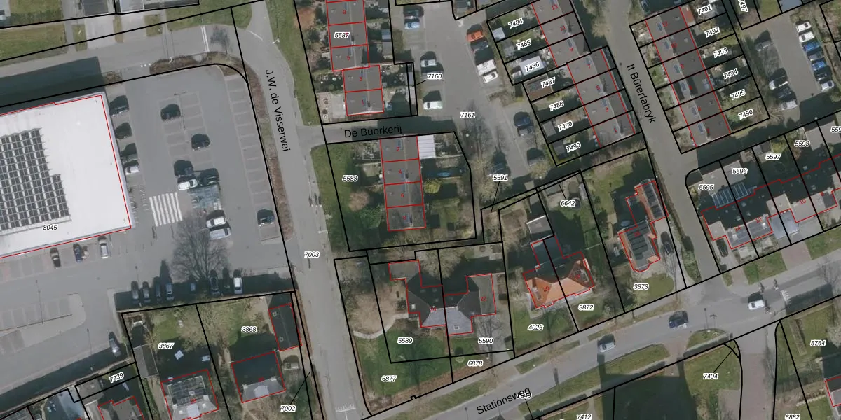 Het perceel waarop De Buorkerij 8 staat heeft een oppervlakte van 812 m². Dit is een groot perceel. De perceeloppervlakte wordt geregistreerd door het Kadaster. Gedetailleerde informatie over de maten van dit perceel kunt u vinden in het rapport Kadastrale kaart met maatvoering van De Buorkerij 8.