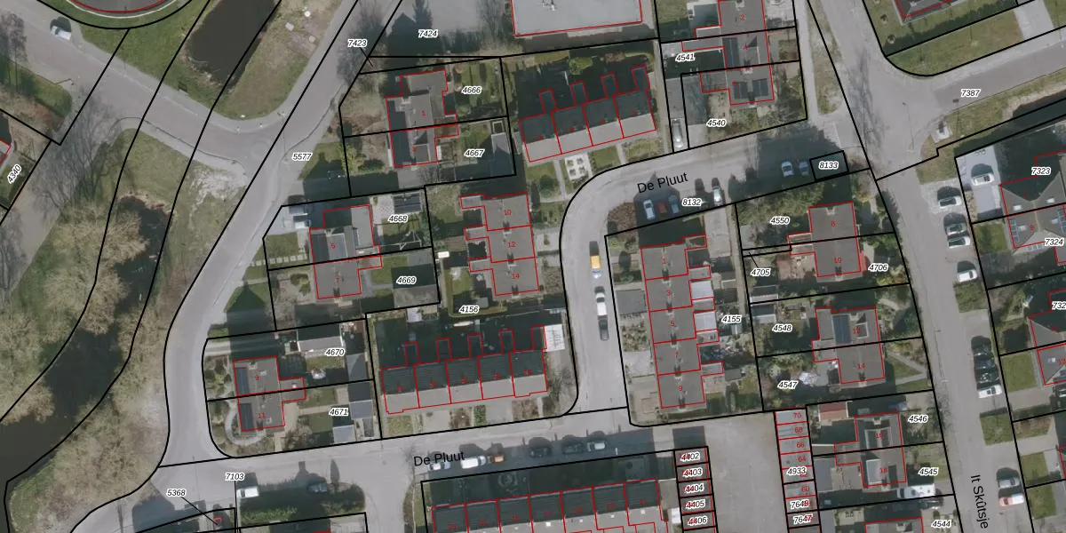De Pluut 14 is gelegen op kadastraal perceel GRO00A4156. Deze kadastrale aanduiding is uniek en wordt gebruikt door het Kadaster om eigendomsrechten en andere zakelijke rechten vast te leggen. Het perceel maakt onderdeel uit van de kadastrale gemeente Grouw.