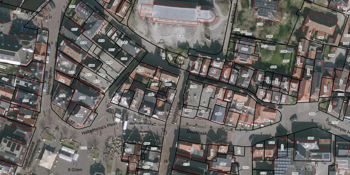 Het adres ligt op het perceel GRO00-A-1304, dat zich in de kadastrale gemeente Grouw bevindt. De gemiddelde perceelgrootte in Grouw is 4953,5 m². Dit perceel is kleiner: de perceeloppervlakte bedraagt 93 m². Het grootste perceel in de kadastrale gemeente is 1,23 km². Het kleinste perceel heeft een oppervlakte van 1 m². Er zijn geen andere adressen aanwezig op het perceel. In de Basisregistratie Kadaster (BRK) werden de grenzen van het perceel geregistreerd op 11-11-2003.