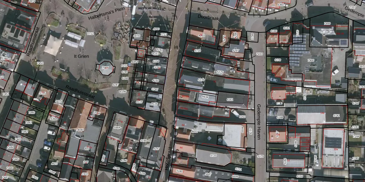 Het perceel waarop het adres ligt is GRO00-A-4434. De afkorting 'GRO00' staat voor kadastrale gemeente Grouw. Het perceel is 156 m² groot. Dat is kleiner dan de gemiddelde perceeloppervlakte in Grouw, dat op 4953,5 m² ligt. Het kleinste perceel in de kadastrale gemeente is 1 m² groot. De grootste perceeloppervlakte is 1,23 km². Op het perceel liggen in totaal 2 adressen. In de Basisregistratie Kadaster (BRK) werden de grenzen van het perceel geregistreerd op 15-01-1998.