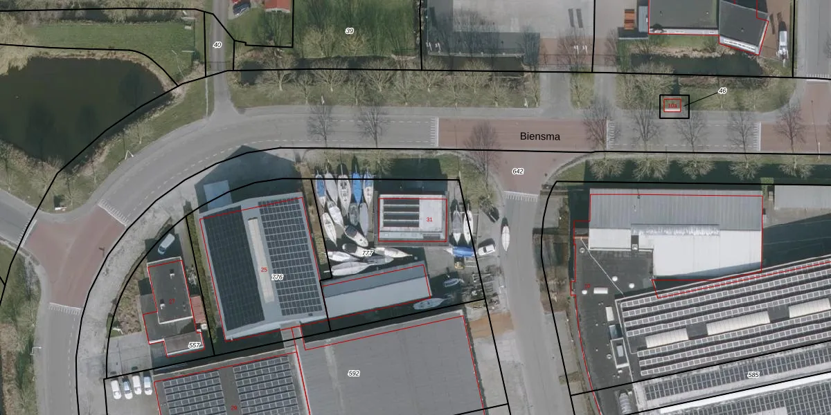 Het adres is gelegen op perceel 777 in de sectie G en de kadastrale gemeente Grouw. De kadastrale aanduiding is aldus GRO00-G-777. Het perceel is 1193 m² groot. Dat is kleiner dan de gemiddelde perceeloppervlakte in Grouw, dat op 4949,4 m² ligt. Het kleinste perceel in de kadastrale gemeente is 1 m² groot. De grootste perceeloppervlakte is 1,23 km². Dit is het enige adres dat aanwezig is op het perceel. De laatste wijziging in het de Basisregistratie Kadaster (BRK) was op 06-10-2004.