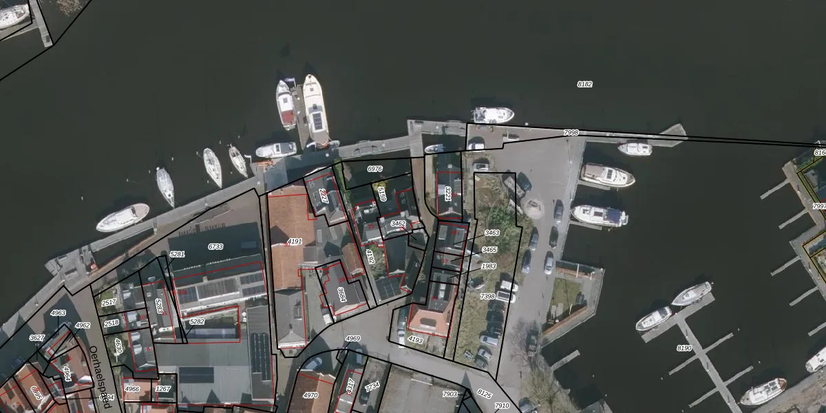Het adres ligt op het perceel GRO00-A-5159, dat zich in de kadastrale gemeente Grouw bevindt. Het perceel is kleiner dan gemiddeld in Grouw. Het perceel is 135 m² groot, terwijl het gemiddelde ligt op 4953,5 m². Het kleinste perceel in de kadastrale gemeente is 1 m² groot. De grootste perceeloppervlakte is 1,23 km². Er zijn geen andere adressen aanwezig op het perceel. De laatste wijziging in het de Basisregistratie Kadaster (BRK) was op 15-02-2006.