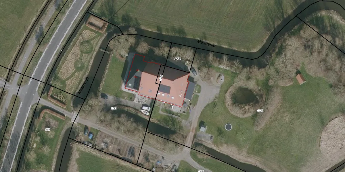 Het adres is gelegen op perceel 1232 in de sectie G en de kadastrale gemeente Grouw. De kadastrale aanduiding is aldus GRO00-G-1232. Het perceel is met 8578 m² relatief groot. Het gemiddelde ligt in de kadastrale gemeente Grouw op 4949,4 m². Het kleinste perceel in de kadastrale gemeente is 1 m² groot. De grootste perceeloppervlakte is 1,23 km². Er zijn geen andere adressen aanwezig op het perceel. In de Basisregistratie Kadaster (BRK) werden de grenzen van het perceel geregistreerd op 02-08-2019.
