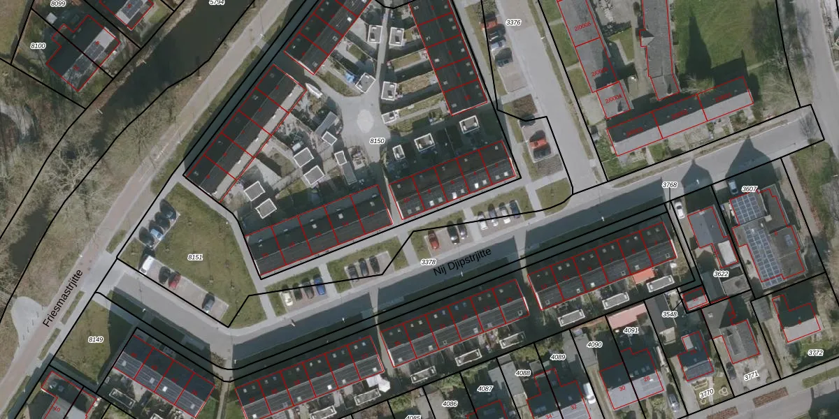 Het perceel waarop Nij Djipstrjitte 10 staat heeft een oppervlakte van 3355 m². Dit is een zeer groot perceel. De perceeloppervlakte wordt geregistreerd door het Kadaster. Gedetailleerde informatie over de maten van dit perceel kunt u vinden in het rapport Kadastrale kaart met maatvoering van Nij Djipstrjitte 10.