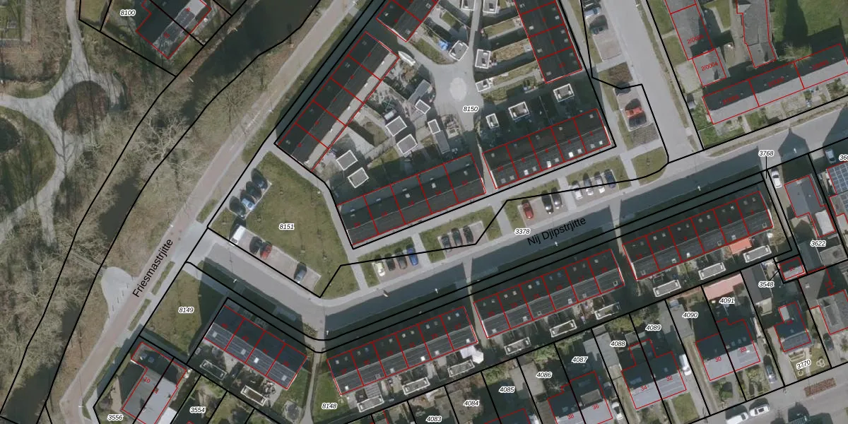 Het perceel waarop Nij Djipstrjitte 16 staat heeft een oppervlakte van 3355 m². Dit is een zeer groot perceel. De perceeloppervlakte wordt geregistreerd door het Kadaster. Gedetailleerde informatie over de maten van dit perceel kunt u vinden in het rapport Kadastrale kaart met maatvoering van Nij Djipstrjitte 16.