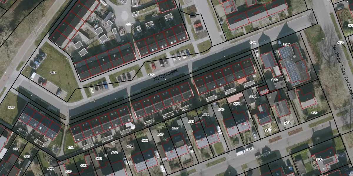 Het perceel waarop Nij Djipstrjitte 17 staat heeft een oppervlakte van 2655 m². Dit is een zeer groot perceel. De perceeloppervlakte wordt geregistreerd door het Kadaster. Gedetailleerde informatie over de maten van dit perceel kunt u vinden in het rapport Kadastrale kaart met maatvoering van Nij Djipstrjitte 17.