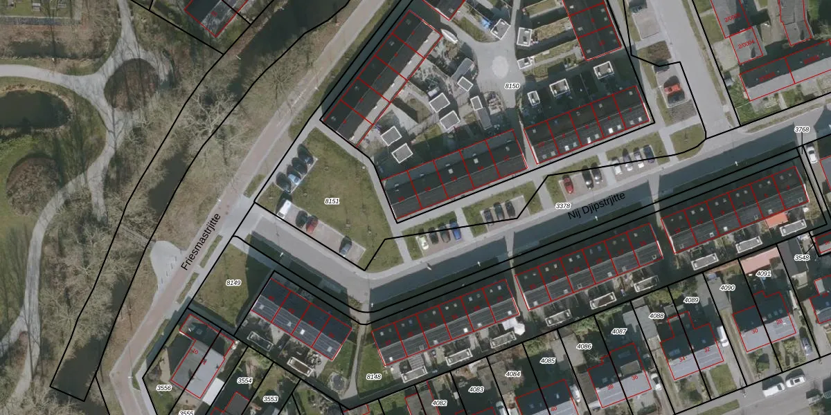 Het perceel waarop Nij Djipstrjitte 20 staat heeft een oppervlakte van 3355 m². Dit is een zeer groot perceel. De perceeloppervlakte wordt geregistreerd door het Kadaster. Gedetailleerde informatie over de maten van dit perceel kunt u vinden in het rapport Kadastrale kaart met maatvoering van Nij Djipstrjitte 20.