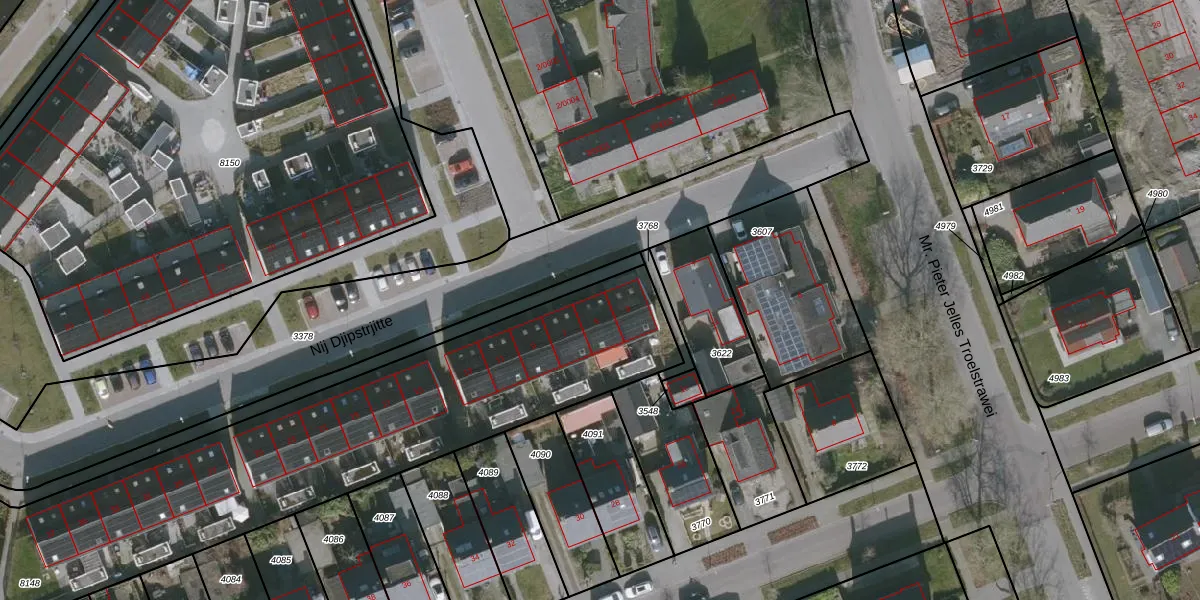 Nij Djipstrjitte 5 is gelegen op kadastraal perceel GRO00A8148. Deze kadastrale aanduiding is uniek en wordt gebruikt door het Kadaster om eigendomsrechten en andere zakelijke rechten vast te leggen. Het perceel maakt onderdeel uit van de kadastrale gemeente Grouw.