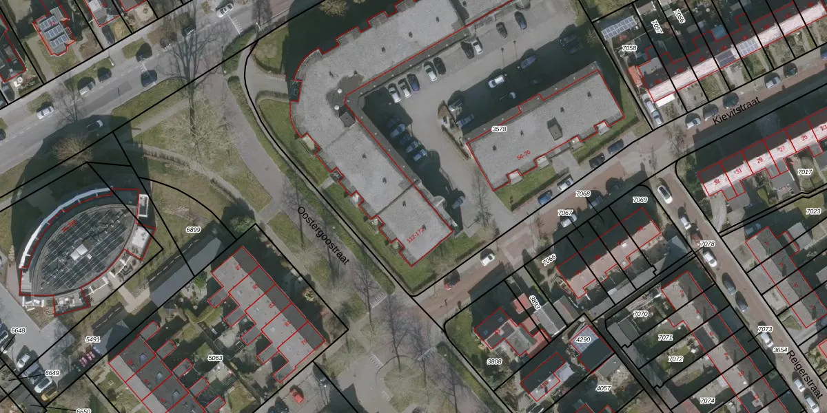 Het perceel waarop Oostergoostraat 114 staat heeft een oppervlakte van 5370 m². Dit is een zeer groot perceel. De perceeloppervlakte wordt geregistreerd door het Kadaster. Gedetailleerde informatie over de maten van dit perceel kunt u vinden in het rapport Kadastrale kaart met maatvoering van Oostergoostraat 114.