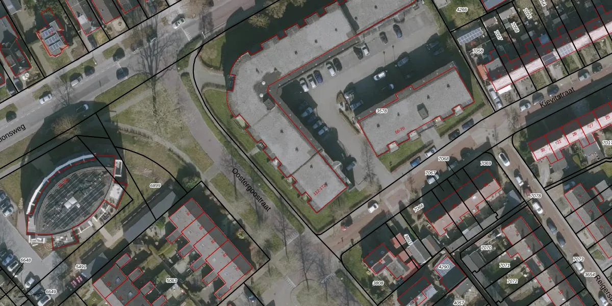 Het perceel waarop Oostergoostraat 116 staat heeft een oppervlakte van 5370 m². Dit is een zeer groot perceel. De perceeloppervlakte wordt geregistreerd door het Kadaster. Gedetailleerde informatie over de maten van dit perceel kunt u vinden in het rapport Kadastrale kaart met maatvoering van Oostergoostraat 116.