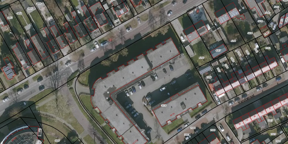 Het perceel waarop Oostergoostraat 124 staat heeft een oppervlakte van 5370 m². Dit is een zeer groot perceel. De perceeloppervlakte wordt geregistreerd door het Kadaster. Gedetailleerde informatie over de maten van dit perceel kunt u vinden in het rapport Kadastrale kaart met maatvoering van Oostergoostraat 124.