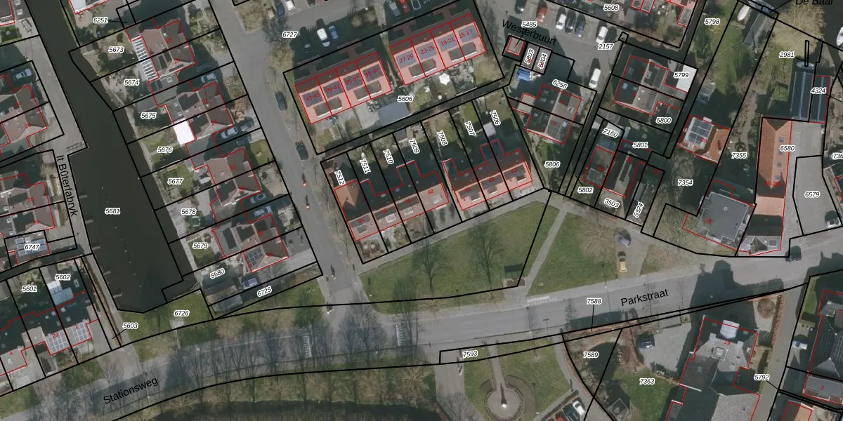 Parkstraat 50 is gelegen op kadastraal perceel GRO00A7510. Deze kadastrale aanduiding is uniek en wordt gebruikt door het Kadaster om eigendomsrechten en andere zakelijke rechten vast te leggen. Het perceel maakt onderdeel uit van de kadastrale gemeente Grouw.