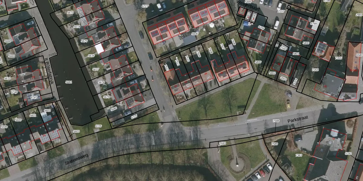 Parkstraat 54 is gelegen op kadastraal perceel GRO00A7512. Deze kadastrale aanduiding is uniek en wordt gebruikt door het Kadaster om eigendomsrechten en andere zakelijke rechten vast te leggen. Het perceel maakt onderdeel uit van de kadastrale gemeente Grouw.