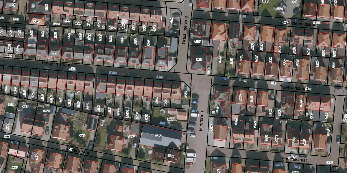Paviljoenstraat 40 is gelegen op kadastraal perceel GRO00A5201. Deze kadastrale aanduiding is uniek en wordt gebruikt door het Kadaster om eigendomsrechten en andere zakelijke rechten vast te leggen. Het perceel maakt onderdeel uit van de kadastrale gemeente Grouw.