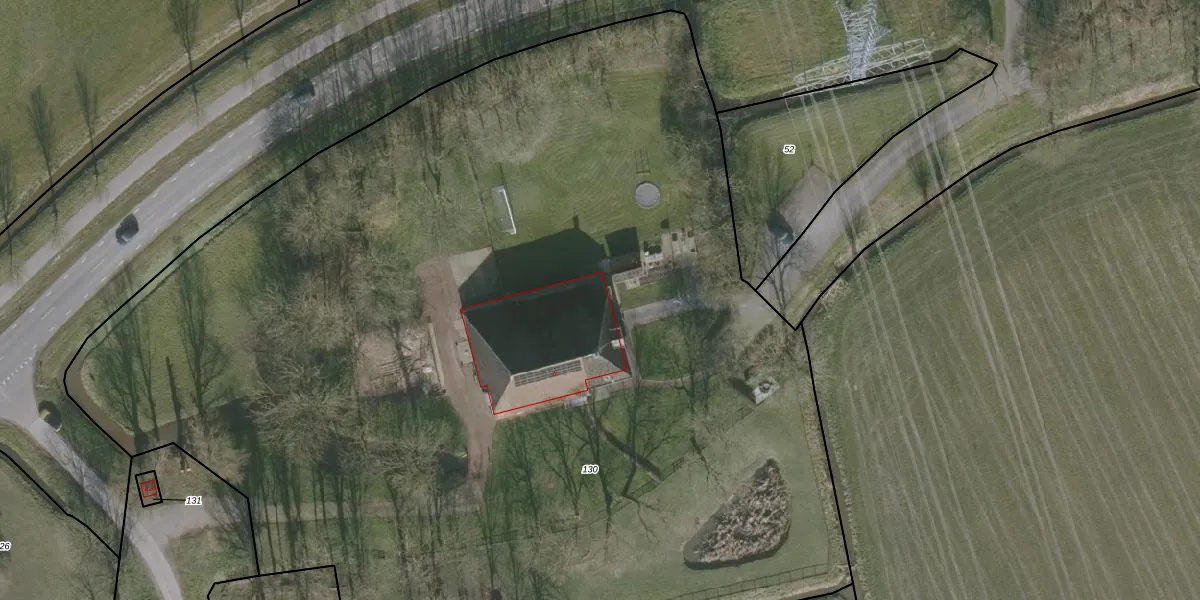 Het adres is gelegen op perceel 130 in de sectie H en de kadastrale gemeente Grouw. De kadastrale aanduiding is aldus GRO00-H-130. De gemiddelde perceeloppervlakte in de kadastrale gemeente Grouw is 4953,5 m². Dit perceel is met zijn 9090 m² dus groter dan gemiddeld. Het grootste perceel in de kadastrale gemeente is 1,23 km². Het kleinste perceel heeft een oppervlakte van 1 m². Op het perceel bevinden zich geen andere adressen. In de Basisregistratie Kadaster (BRK) werden de grenzen van het perceel geregistreerd op 28-07-1999.