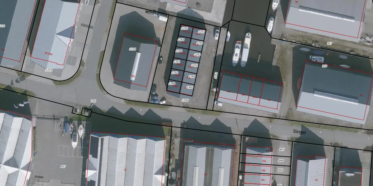 Het perceel waarop Singel 42 staat heeft een oppervlakte van 44 m². Dit is een klein perceel. De perceeloppervlakte wordt geregistreerd door het Kadaster. Gedetailleerde informatie over de maten van dit perceel kunt u vinden in het rapport Kadastrale kaart met maatvoering van Singel 42.