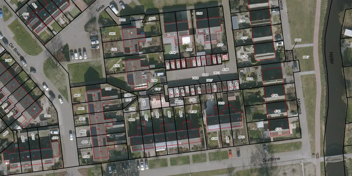 Het adres ligt op het perceel GRO00-A-5734, dat zich in de kadastrale gemeente Grouw bevindt. Het perceel is kleiner dan gemiddeld in Grouw. Het perceel is 18 m² groot, terwijl het gemiddelde ligt op 4941,9 m². Het kleinste perceel in de kadastrale gemeente is 1 m² groot. De grootste perceeloppervlakte is 1,23 km². Dit is het enige adres dat aanwezig is op het perceel. In de Basisregistratie Kadaster (BRK) werden de grenzen van het perceel geregistreerd op 18-11-2019.