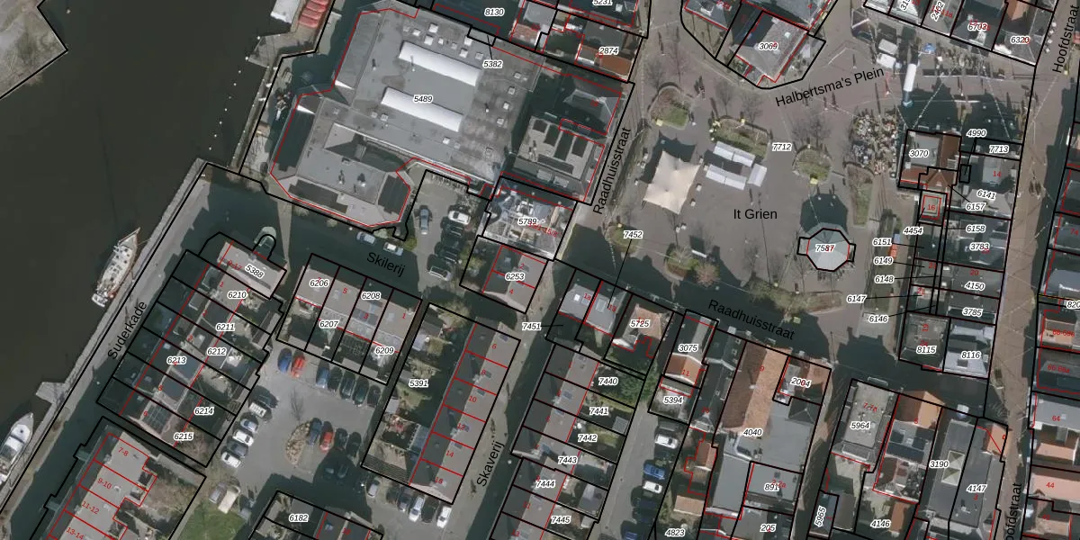Het perceel waarop het adres ligt is GRO00-A-6253. De afkorting 'GRO00' staat voor kadastrale gemeente Grouw. Het perceel is 141 m² groot. Dat is kleiner dan de gemiddelde perceeloppervlakte in Grouw, dat op 4941,9 m² ligt. De grootste perceeloppervlakte in de kadastrale gemeente is 1,23 km². De kleinste oppervlakte bedraagt 1 m². Er zijn 2 adressen aanwezig op het perceel. De huidige grenzen van het perceel zijn digitaal in de Basisregistratie Kadaster (BRK) geregistreerd op 01-09-1998.