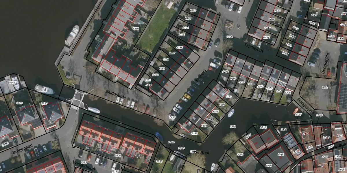 Het perceel waarop het adres ligt is GRO00-A-6190. De afkorting 'GRO00' staat voor kadastrale gemeente Grouw. De gemiddelde perceelgrootte in Grouw is 4941,9 m². Dit perceel is kleiner: de perceeloppervlakte bedraagt 105 m². De grootste perceeloppervlakte in de kadastrale gemeente is 1,23 km². De kleinste oppervlakte bedraagt 1 m². Op het perceel bevinden zich geen andere adressen. De laatste wijziging in het de Basisregistratie Kadaster (BRK) was op 01-09-1998.