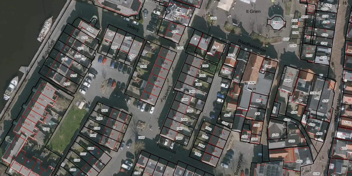 Skaverij 7 is gelegen op kadastraal perceel GRO00A7443. Deze kadastrale aanduiding is uniek en wordt gebruikt door het Kadaster om eigendomsrechten en andere zakelijke rechten vast te leggen. Het perceel maakt onderdeel uit van de kadastrale gemeente Grouw.