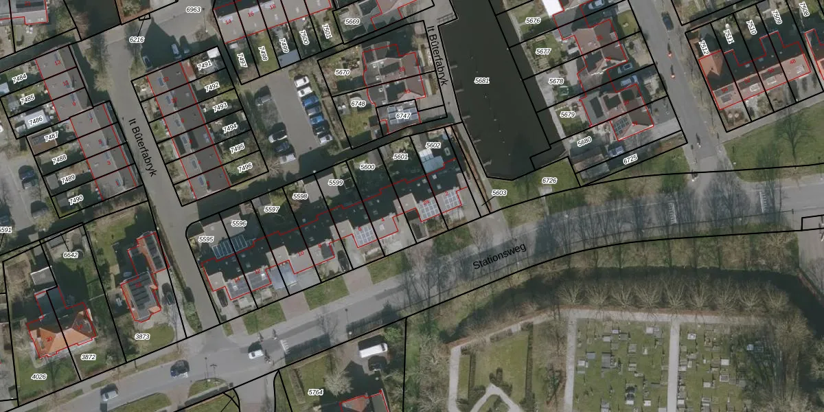 Stationsweg 2-a is gelegen op kadastraal perceel GRO00A5601. Deze kadastrale aanduiding is uniek en wordt gebruikt door het Kadaster om eigendomsrechten en andere zakelijke rechten vast te leggen. Het perceel maakt onderdeel uit van de kadastrale gemeente Grouw.