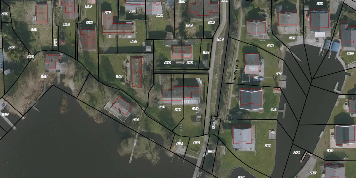 Het adres ligt op het perceel GRO00-C-1658, dat zich in de kadastrale gemeente Grouw bevindt. Het perceel is kleiner dan gemiddeld in Grouw. Het perceel is 193 m² groot, terwijl het gemiddelde ligt op 4953,5 m². Het grootste perceel in de kadastrale gemeente is 1,23 km². Het kleinste perceel heeft een oppervlakte van 1 m². Er zijn geen andere adressen aanwezig op het perceel. De huidige grenzen van het perceel zijn digitaal in de Basisregistratie Kadaster (BRK) geregistreerd op 28-10-2008.