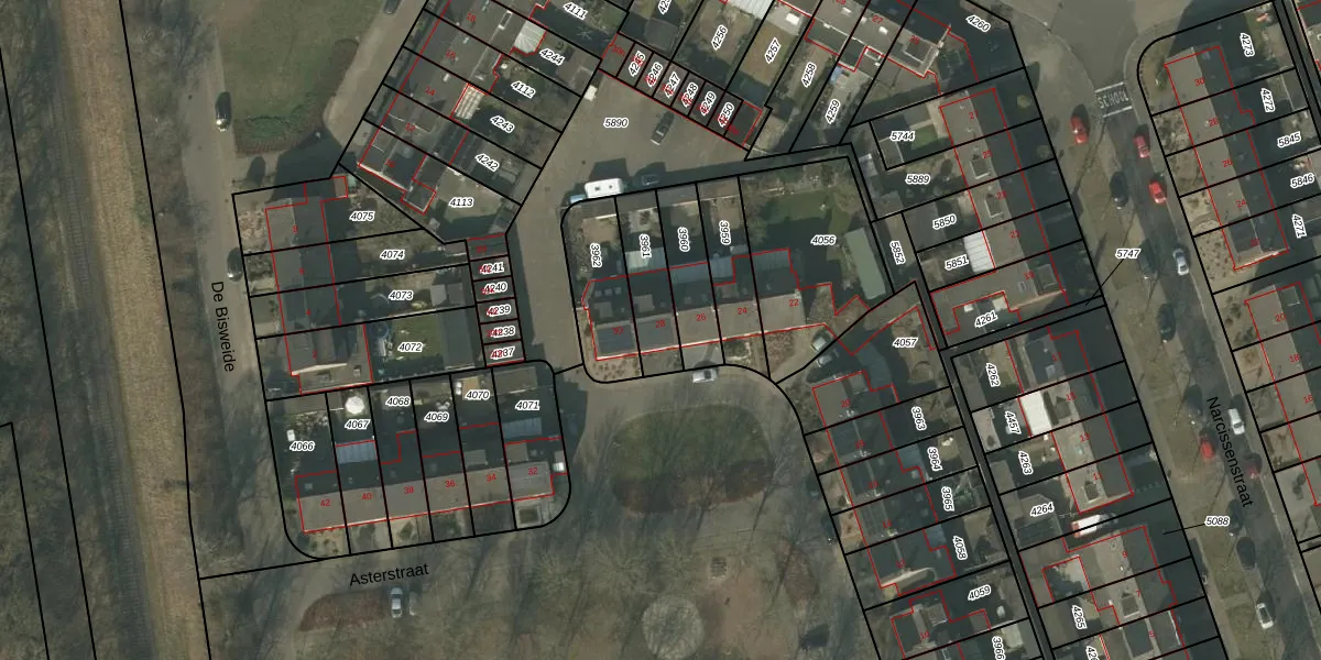 Het perceel waarop Asterstraat 28 staat heeft een oppervlakte van 177 m². Dit is een middelgroot perceel. De perceeloppervlakte wordt geregistreerd door het Kadaster. Gedetailleerde informatie over de maten van dit perceel kunt u vinden in het rapport Kadastrale kaart met maatvoering van Asterstraat 28.