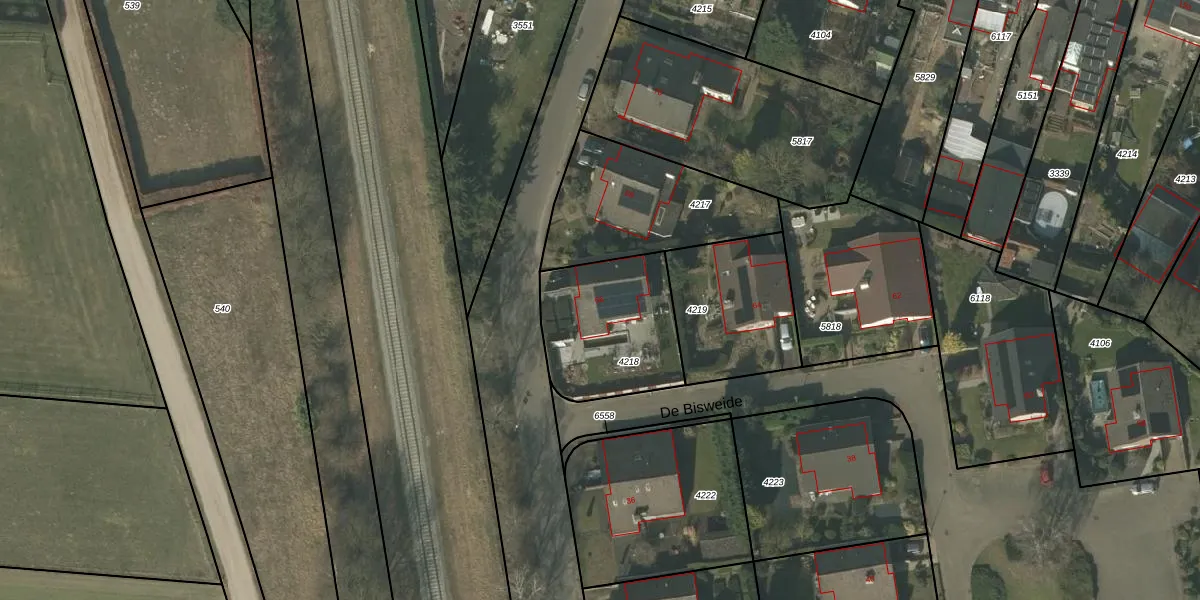 De Bisweide 66 is gelegen op kadastraal perceel GBV00C4218. Deze kadastrale aanduiding is uniek en wordt gebruikt door het Kadaster om eigendomsrechten en andere zakelijke rechten vast te leggen. Het perceel maakt onderdeel uit van de kadastrale gemeente Grubbenvorst.