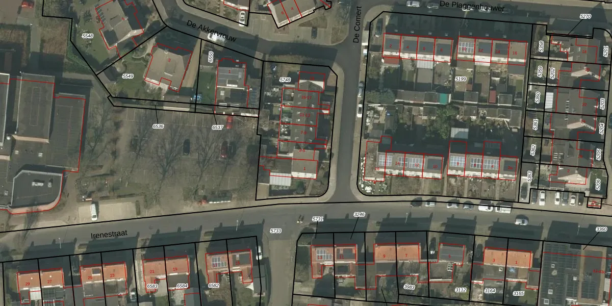 Het perceel waarop De Comert 5 staat heeft een oppervlakte van 1040 m². Dit is een zeer groot perceel. De perceeloppervlakte wordt geregistreerd door het Kadaster. Gedetailleerde informatie over de maten van dit perceel kunt u vinden in het rapport Kadastrale kaart met maatvoering van De Comert 5.