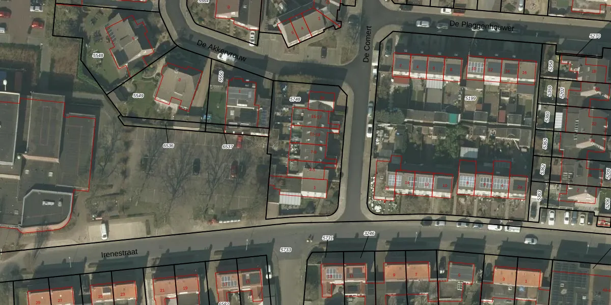 Het perceel waarop De Comert 9 staat heeft een oppervlakte van 1040 m². Dit is een zeer groot perceel. De perceeloppervlakte wordt geregistreerd door het Kadaster. Gedetailleerde informatie over de maten van dit perceel kunt u vinden in het rapport Kadastrale kaart met maatvoering van De Comert 9.